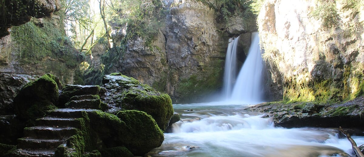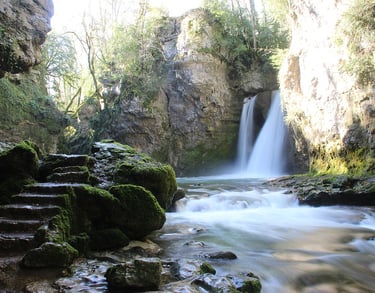 Follow me on a short forest walk that will lead you to the heart of this enchanting site, where the waters of the Venoge and the Veyron meet in a setting of cliffs, waterfalls, and lush greenery.